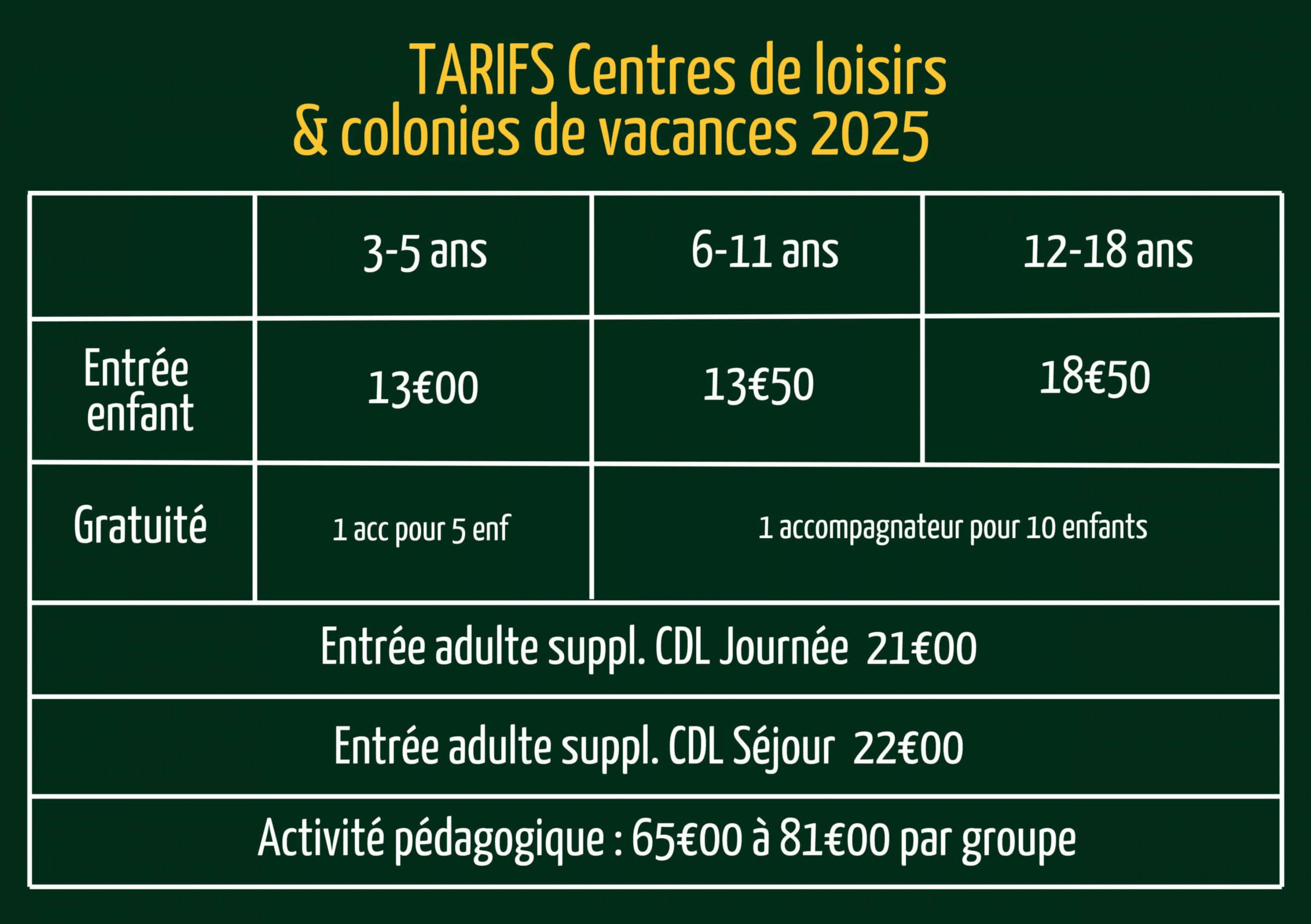 Important : la gestion du comportement des enfants doit être faite par les accompagnateurs du groupe et non par les animateurs du parc.