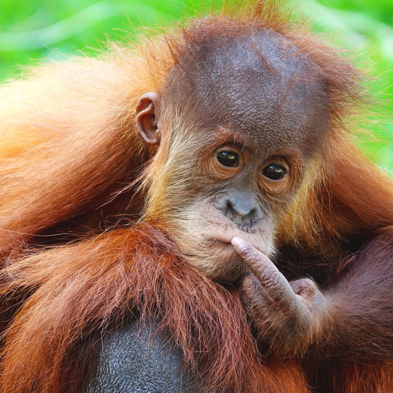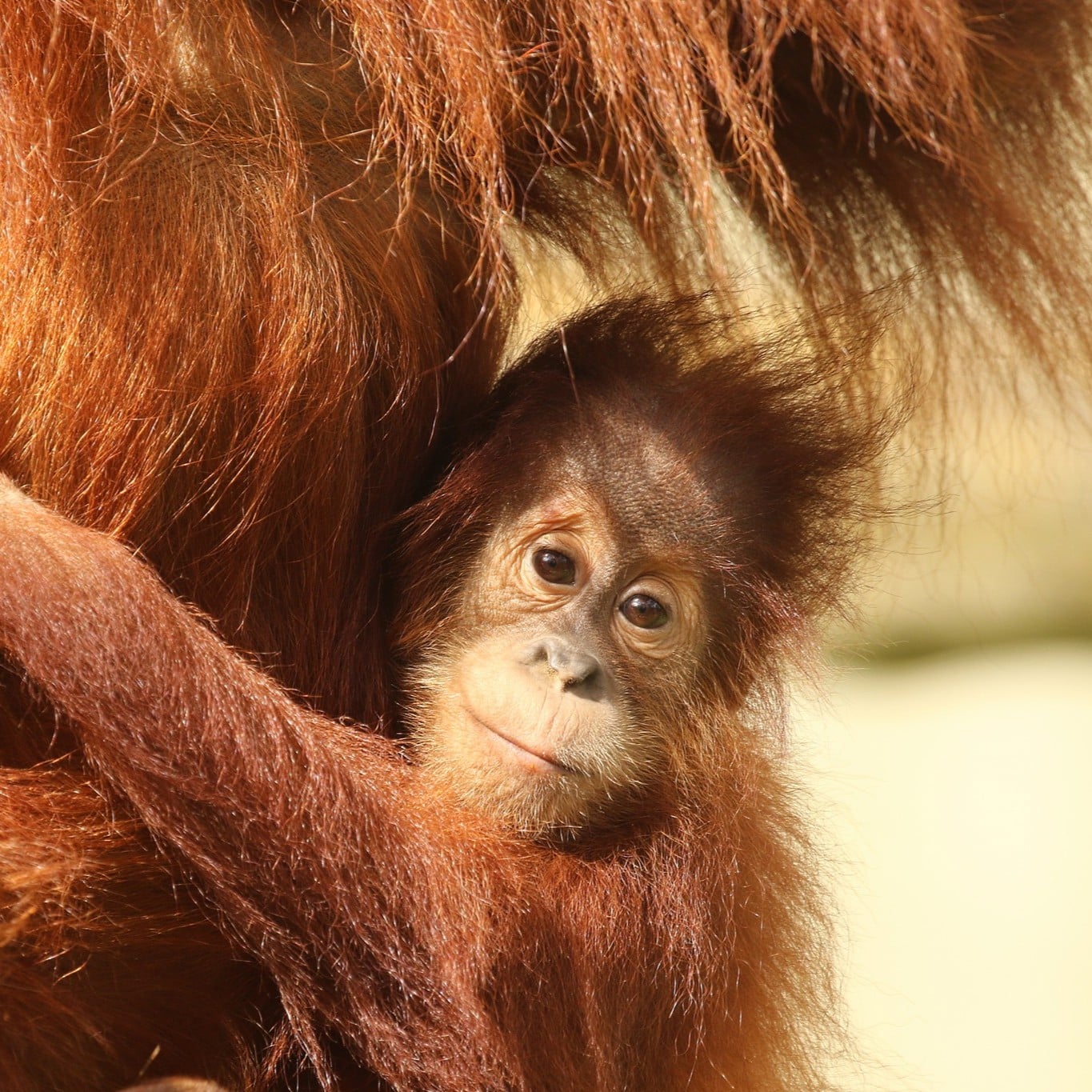 L’orang-outang est le plus grand mammifère arboricole, et le plus grand singe d’Asie. Les mâles sont solitaires, tandis que les femelles vivent avec leur jeune ou en petits groupes de femelles si les ressources alimentaires sont suffisantes. Les femelles élèvent leurs jeunes pendant environ 7 ans, pour une indépendance totale vers 10 ans. Tant qu’elles ont encore un jeune à charge, elles ne se reproduisent pas.