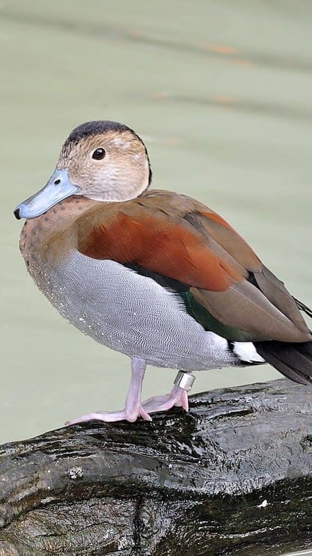 La sarcelle à collier noir tire son nom du plumage du mâle, qui présente une bande noire caractéristique autour du cou. Ce dernier se distingue également par son ventre brun rose tacheté de noir, ainsi que son bec bleu-gris. La femelle, en revanche, arbore un plumage beaucoup plus brun, ce qui la différencie nettement du mâle.